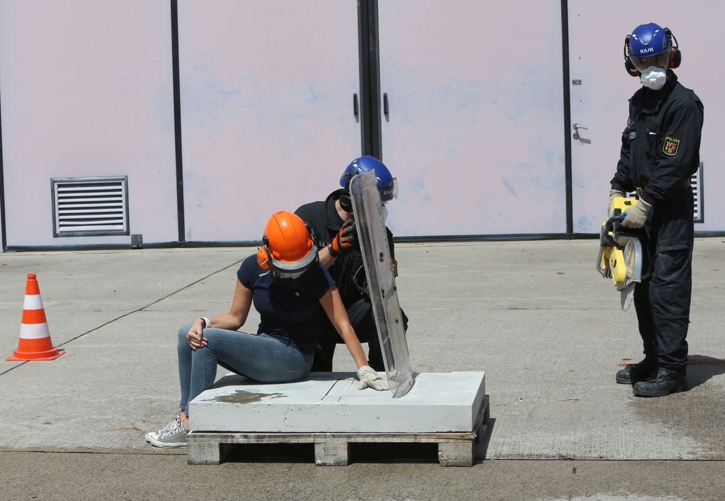 Die Demonstranten kleben sich in Regensburg vor dem Werk fest, doch die Straßen bleiben leer. Es sind nur wenige Mitarbeiter, z.B. eine Security-Firma, vor Ort.