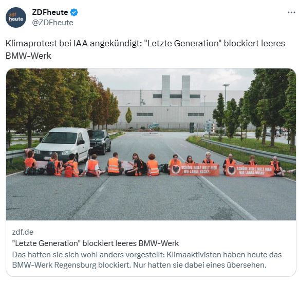 Auch ein Großbetrieb wie BMW macht mal Pause. In dem Werk sind aktuell Betriebsferien, doch dies wird offenbar von den Klima-Aktivisten übersehen.