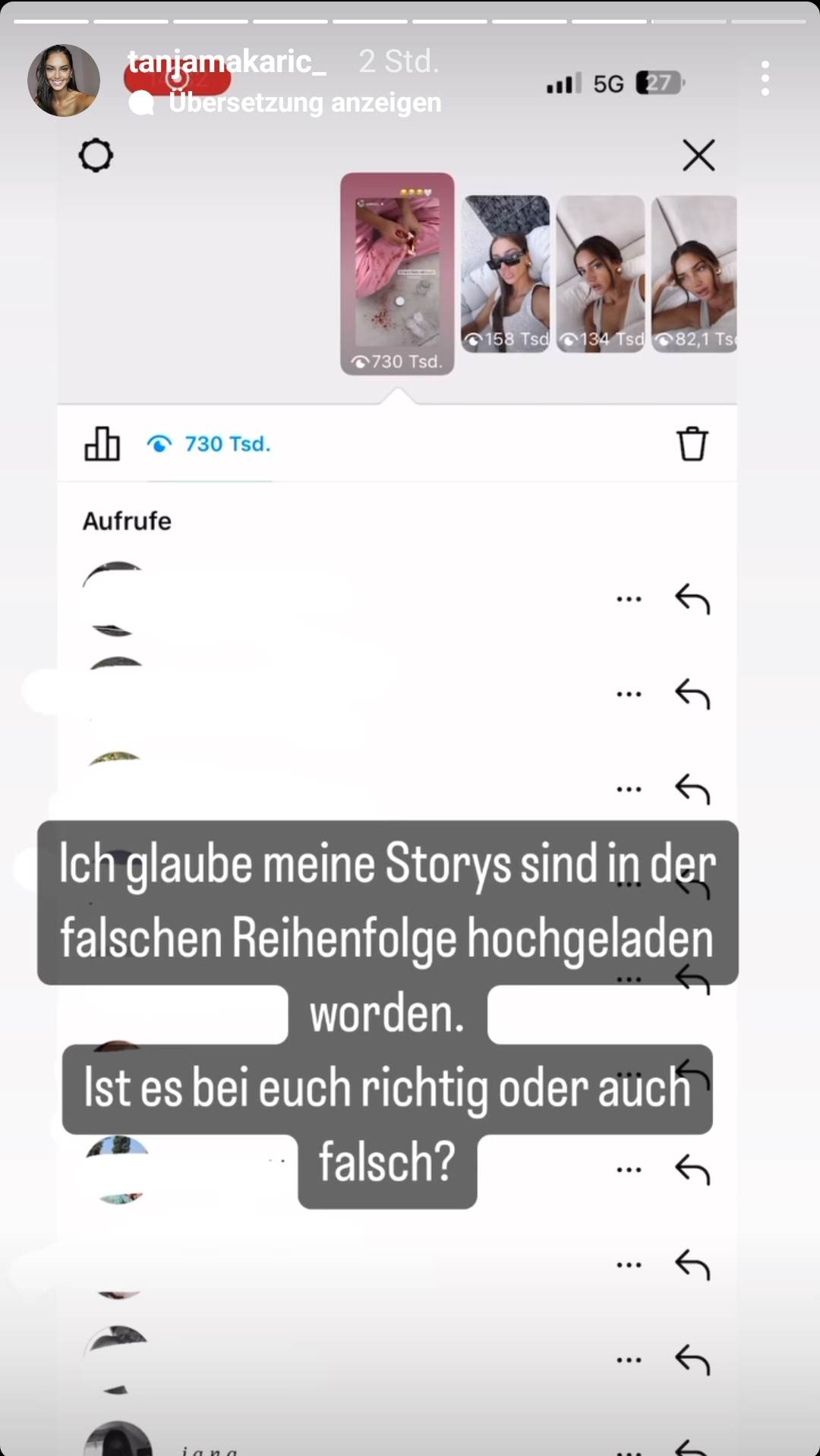 Obwohl Tanja „nur“ 671.000 Follower hat, schauen 730.000 Menschen ihre Story.