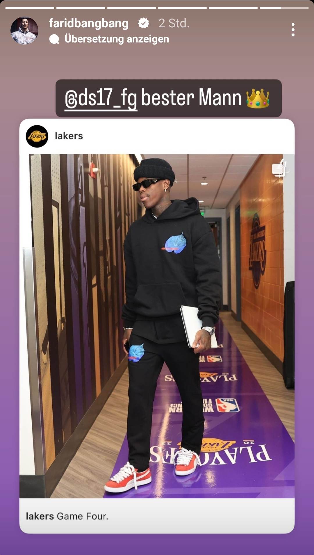 Die LA Lakers um Lebron James sind eine der berühmtesten Sport-Mannschaften der Welt. Einer der Basketball-Superstars trägt jetzt mal eben die Klamotten von Farid Bang…