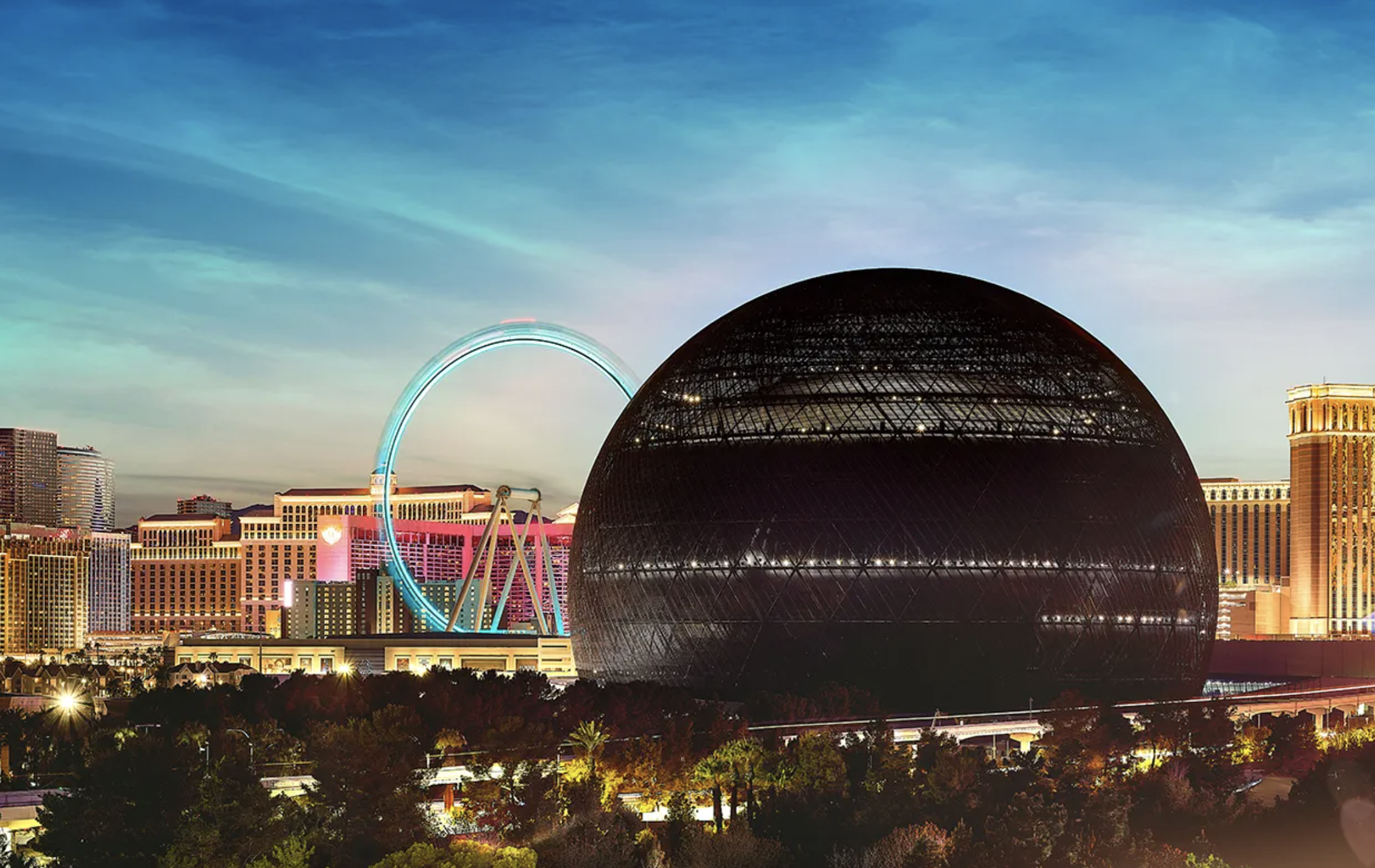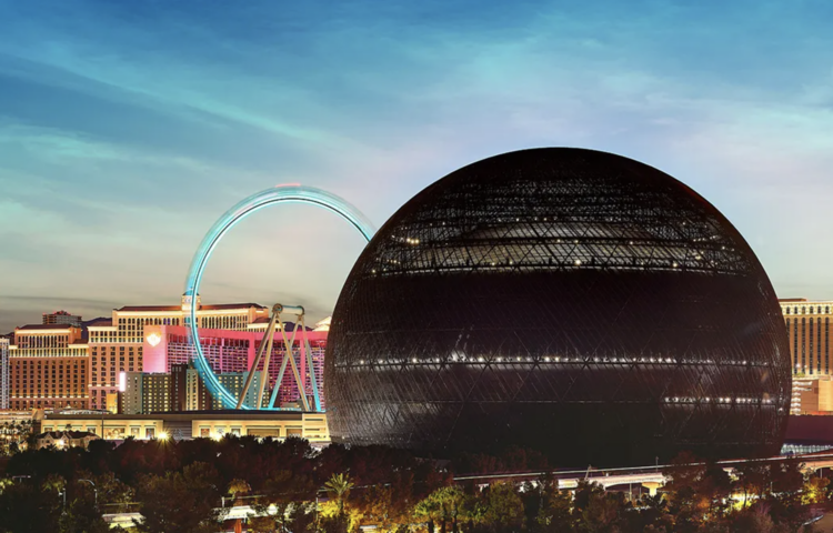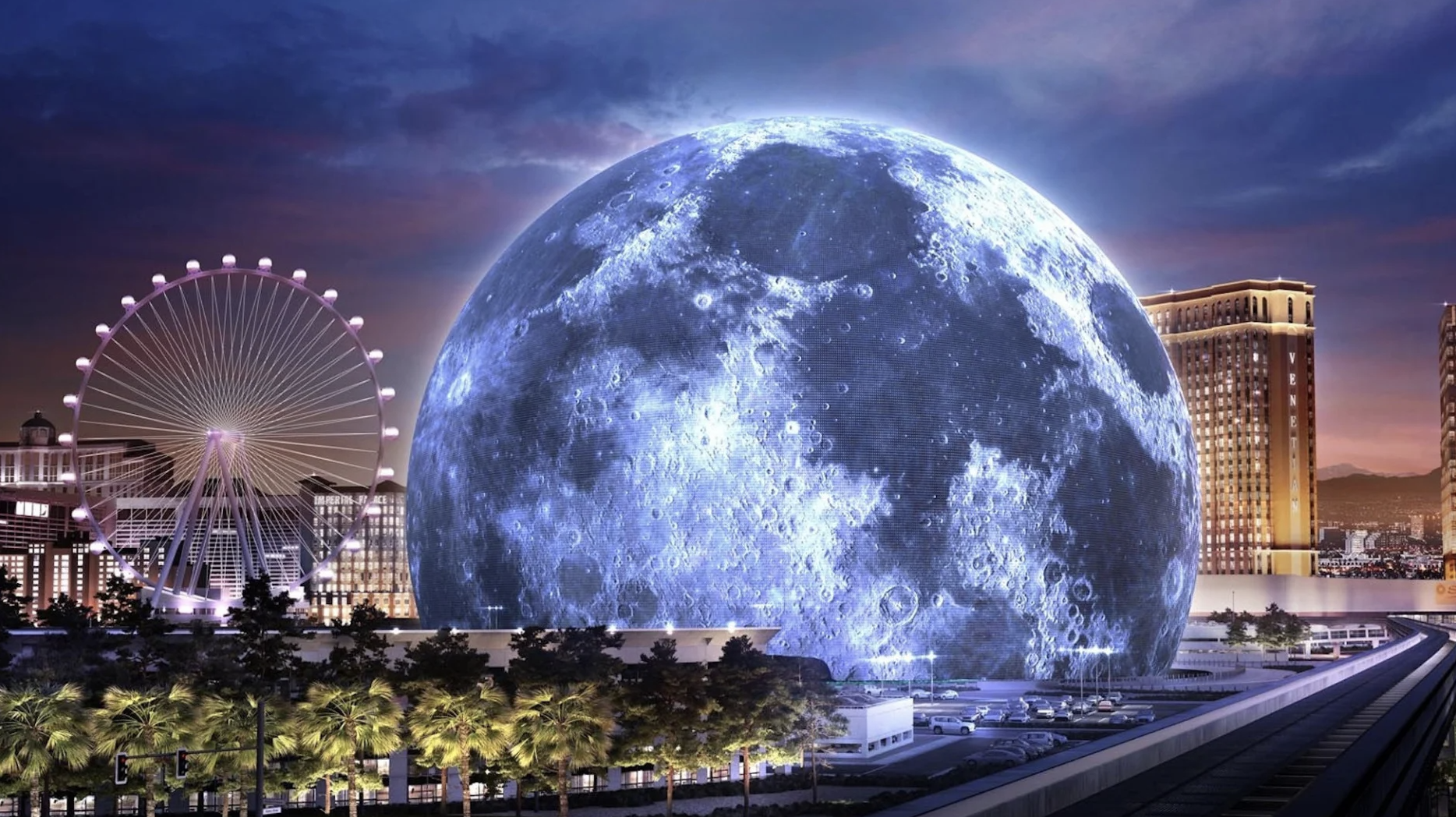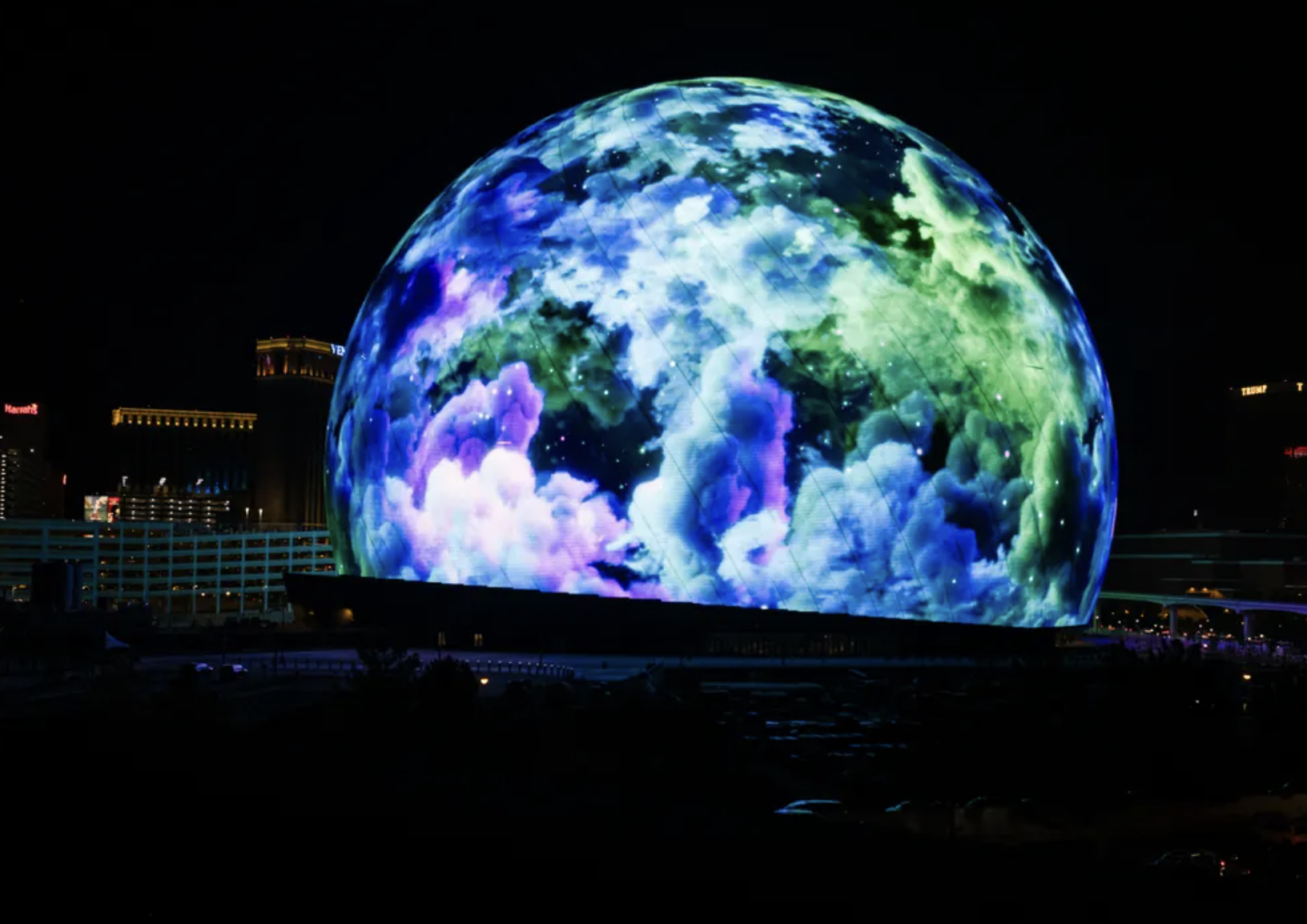 Am Wochenende hat „The Sphere“ in der Wüstenstadt eröffnet. Eine Weltkugel, die einfach mal eben 54.000 Quadratmeter groß ist und außen komplett mit LED-Lichtern überzogen ist.