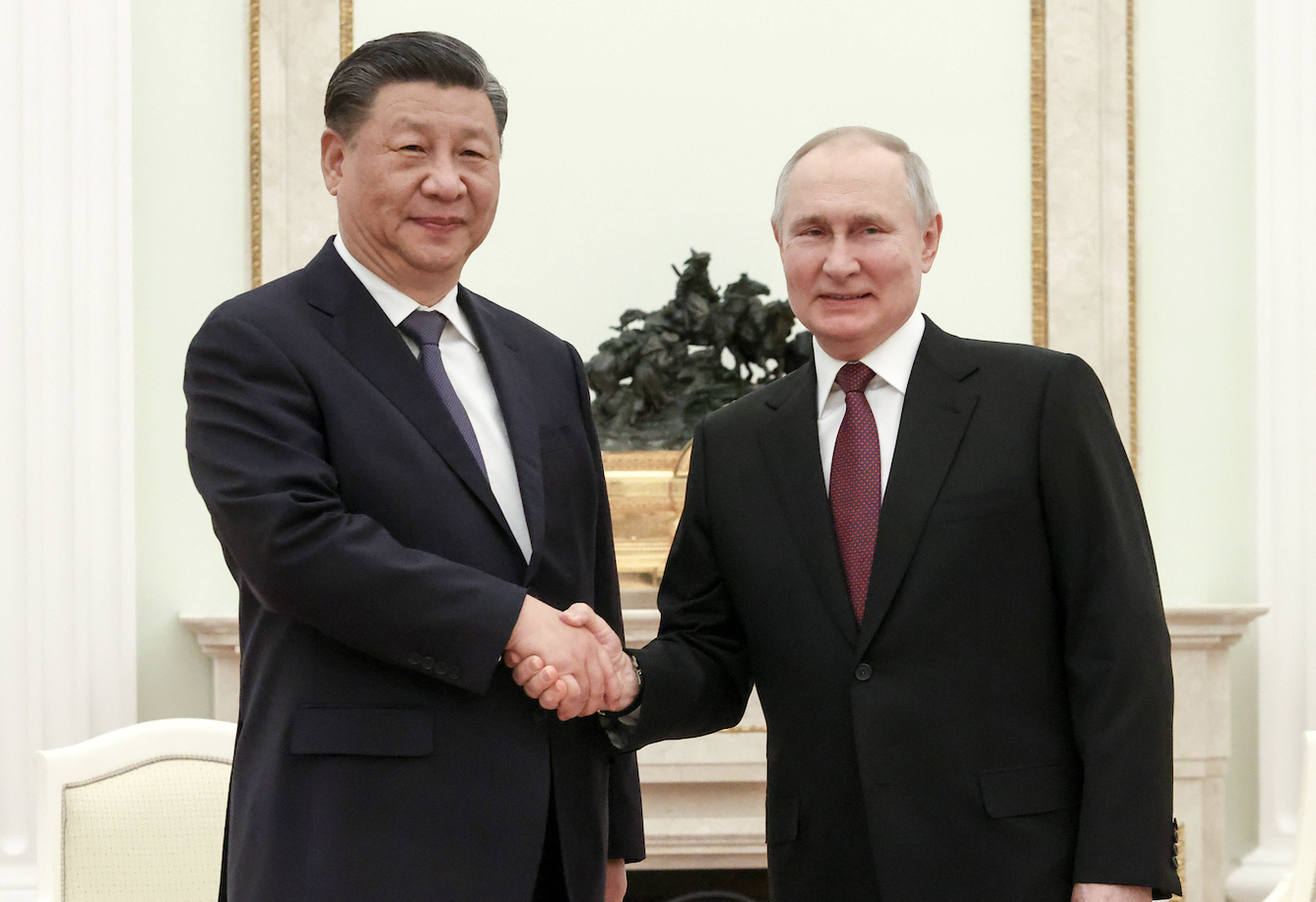 Nachdem Chinas Machthaber mit einer schwarzen Limousine vorfährt, trifft er kurze Zeit später auf Putin, mit dem er sich über den Krieg in der Ukraine unterhalten will.
