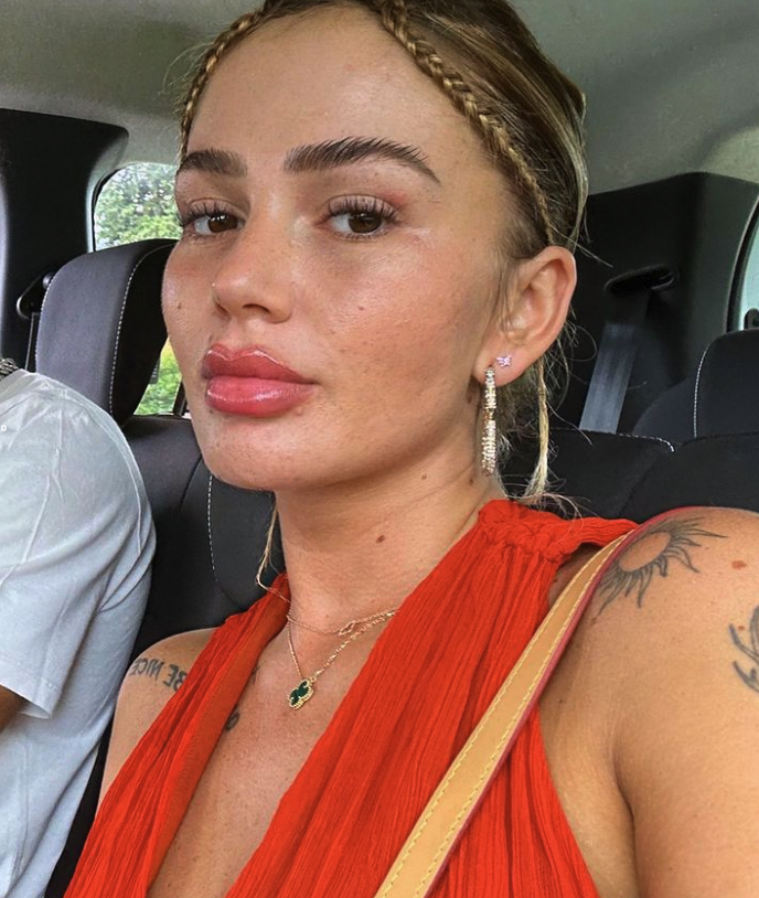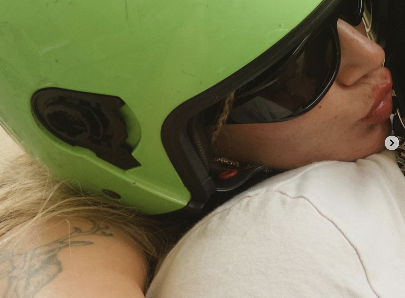 Auf Instagram teilt de 27-Jährige ein Foto, auf welchem sie in einer G-Klasse neben einer Person mit einem weißen T-Shirt und einer fetten iced-out-chain zu sehen ist.