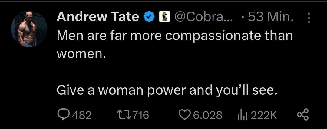 Der Top G haut mal wieder eine seiner umstrittenen Aussagen raus. Auf X schreibt der ehemalige Knast-Insasse: