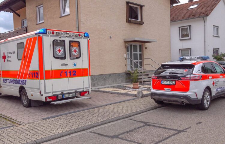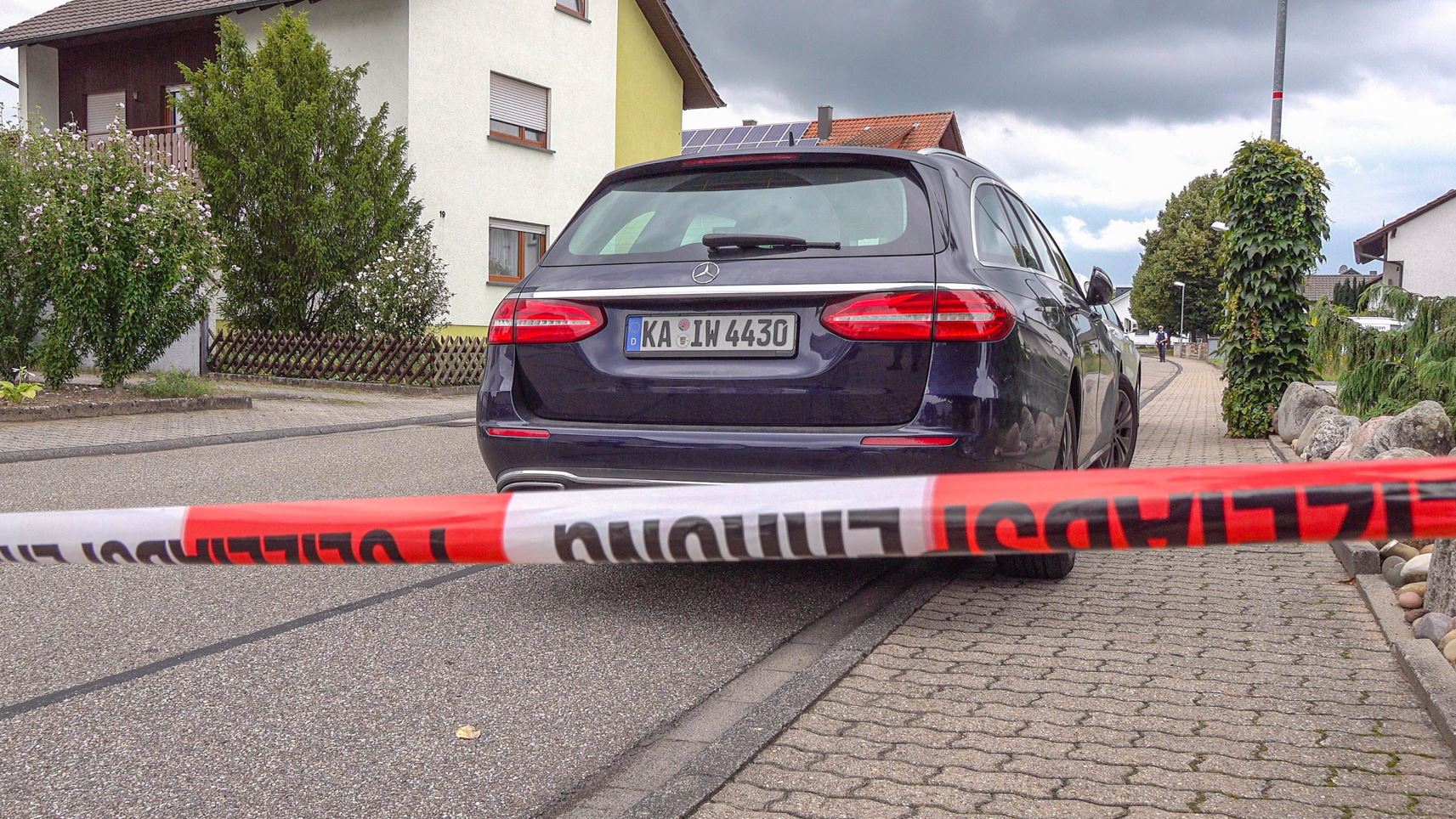 Der Enkel der Getöteten lässt sich widerstandlos festnehmen und wird von der Polizei mitgenommen.