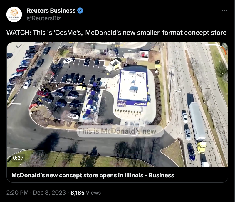 In Illinois (USA) hat am Freitag die erste Filiale der neuen Kette CosMc’s eröffent. CosMc’s soll ein direkter Konkurrent für Starbucks werden und konzentiert sich somit auch auf ein ähnliches Angebot.