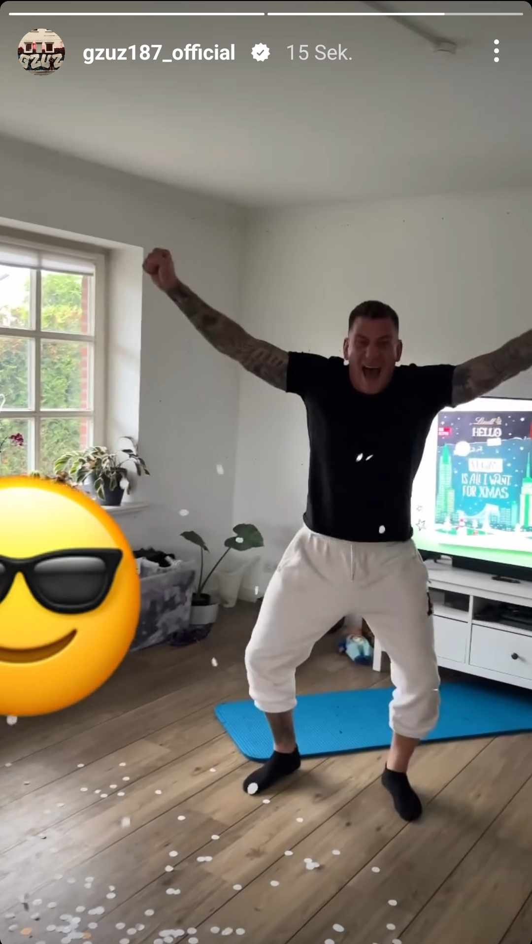 Auf Instagram zeigt der Hamburger Künstler, dass er bei der Nachricht direkt einen Freudensprung macht.