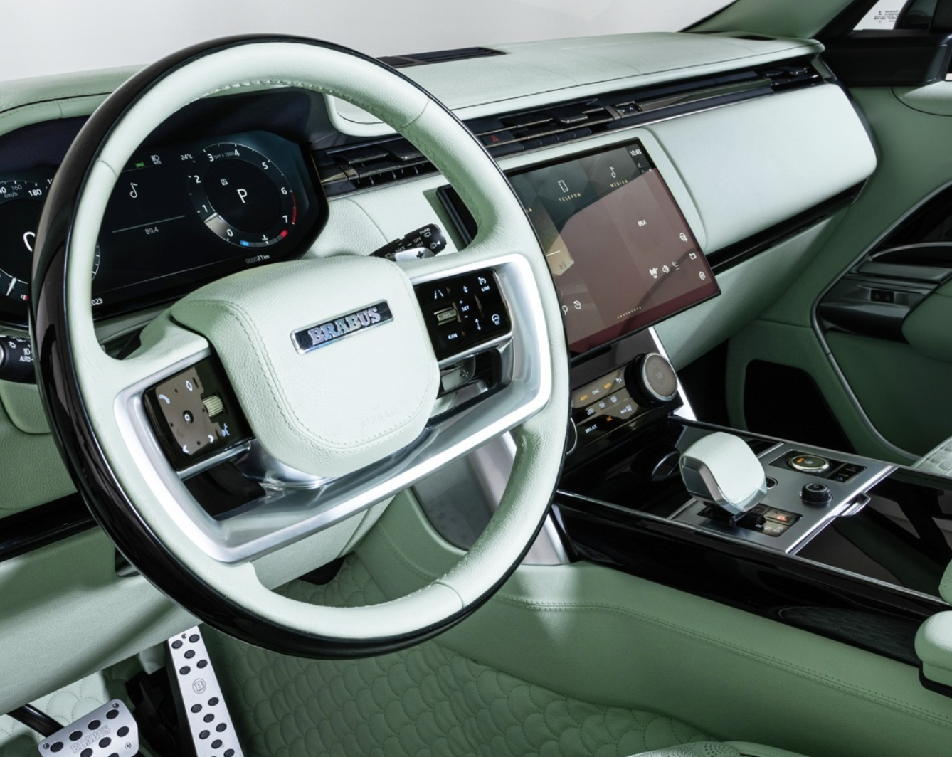 Brabus hat sich auch um die Optik gekümmert: Fette 24-Zoll-Felgen, eine neue Auspuffanlage, komplett neue Luxus-Sitze und das gesamte Interior besteht aus feinstem grünen Leder!