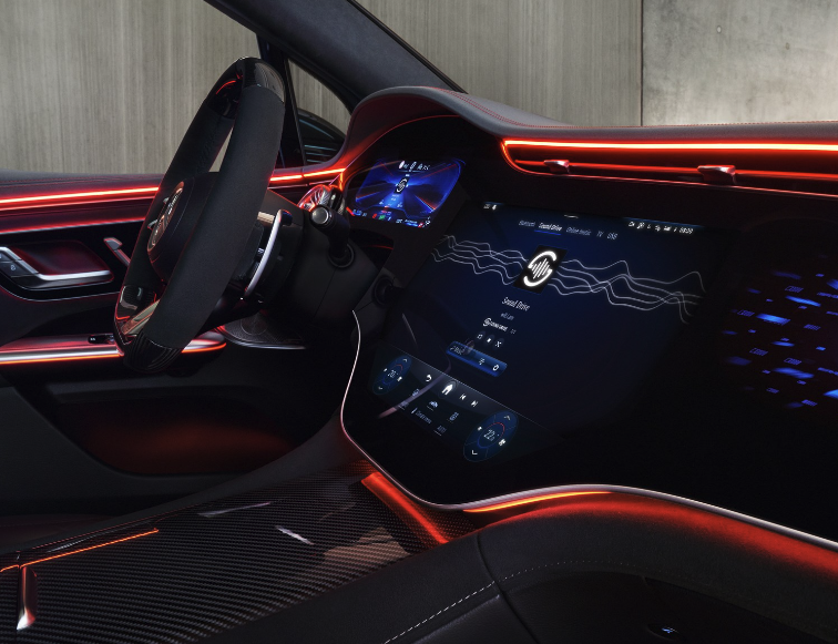 Bereits ab Mitte des Jahres wird das MBUX Sound Drive Experience für die neuesten elektrischen Mercedes-Modelle verfügbar sein.