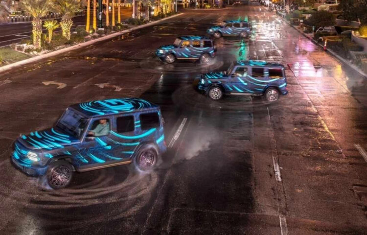 Stellt Euch mal vor, dass Ihr einfach nur nach Hause fahren wollt und plötzlich seht Ihr, wie sich ein Haufen elektrische G-Klassen einfach mitten in der Stadt im Kreis drehen…