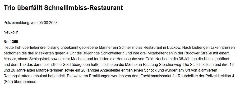 Am frühen Morgen gegen 4 Uhr nachts stürmen drei maskierte Männer das McDonalds in Berlin-Buckow.