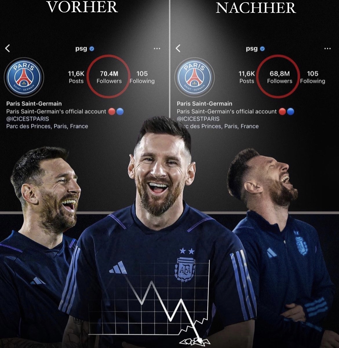 Seit der Bekanntgabe der Trennung vom argentinischen Weltmeister erlebt PSG einen regelrechten Absturz in den sozialen Medien.