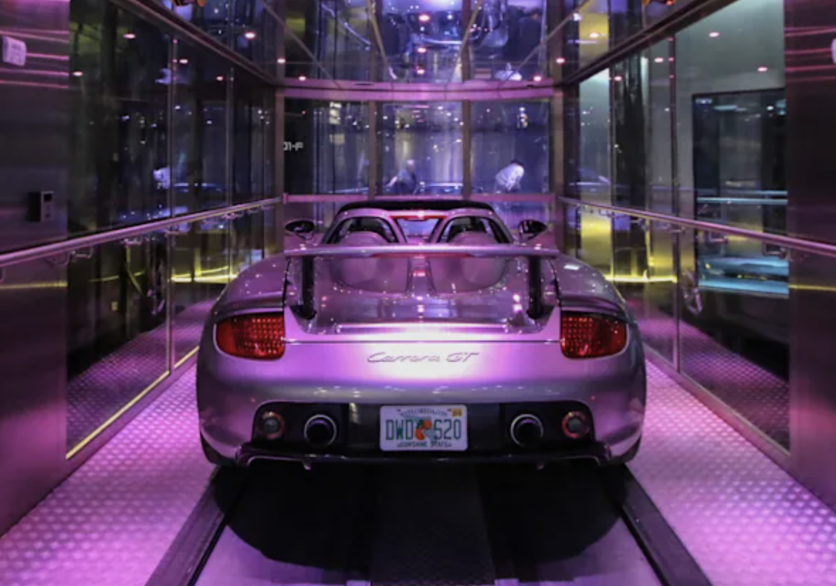 Irre: Jede Wohnung im Turm kann man über einen Aufzug erreichen – im Auto!