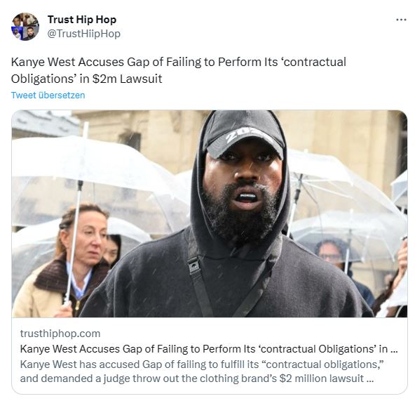 Eigentlich wurde GAP von den Besitzern des Art City Centre verklagt, doch das Unternehmen reichte diese an Kanye weiter. Für eine Ausstellung hatte er unerlaubt Umbauten vornehmen lassen.