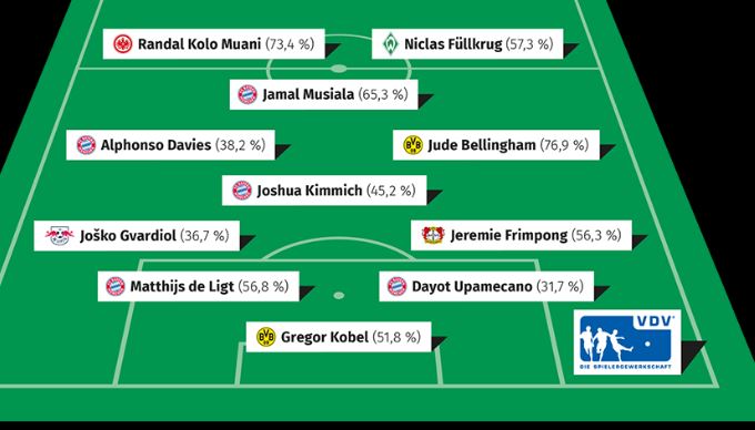 Mit 29,6 Prozent landet er knapp vor Randal Kolo Muani (28,6%).