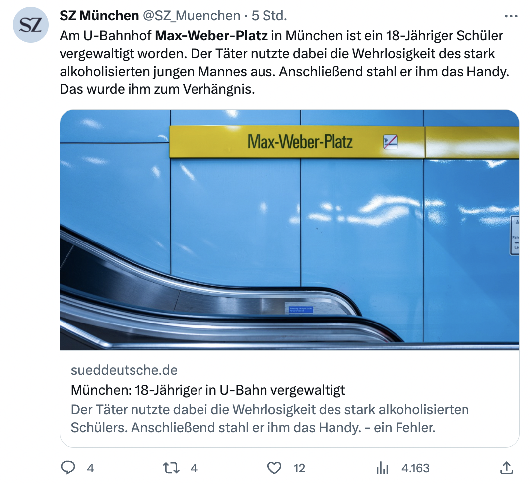 Angeblich gibt es keine Zeugen, niemand unternimmt etwas. Sogar eine U-Bahnwache ist auf Patrouille – will aber nichts bemerkt haben!