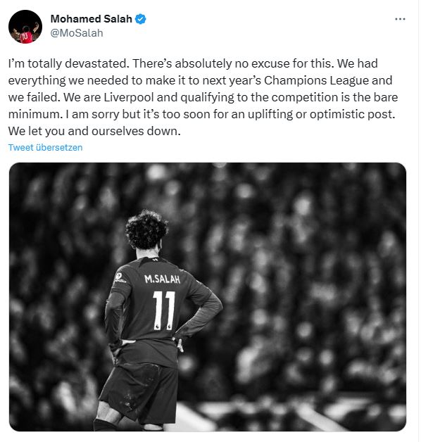 Trotz einer guten Rückrunde reicht es für den FC Liverpool nicht mehr für die Champions League. Mohamed Salah zeigt sich darüber tief bestürzt.