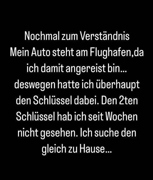 „Ich wusste, er war im Auto. Dort war eine Jacke, die jetzt nicht mehr drin war. Die war bei meinem Geschäftspartner. Also habe ich ihn angerufen und bingo, der Schlüssel“