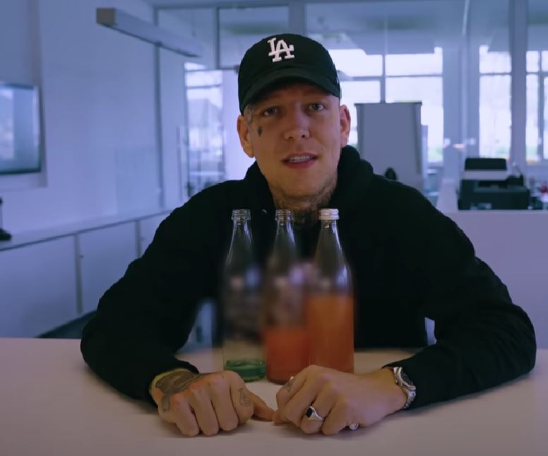 In seinem Youtube-Video, das ihn bei der Produktion in Frankfurt zeigt, verrät er, dass er die Sorte mit der blauen Farbe zurzeit besonders feiert.