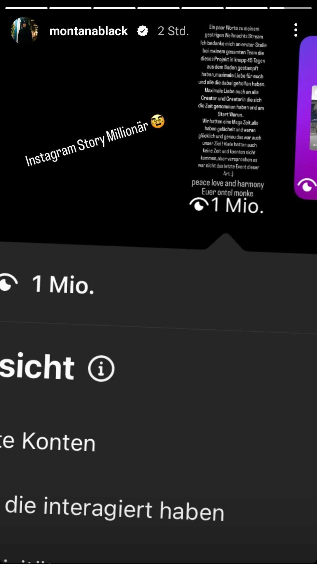 Monte zeigt, dass er die 1 Million Views auf seiner Instagram-Story geknackt hat.