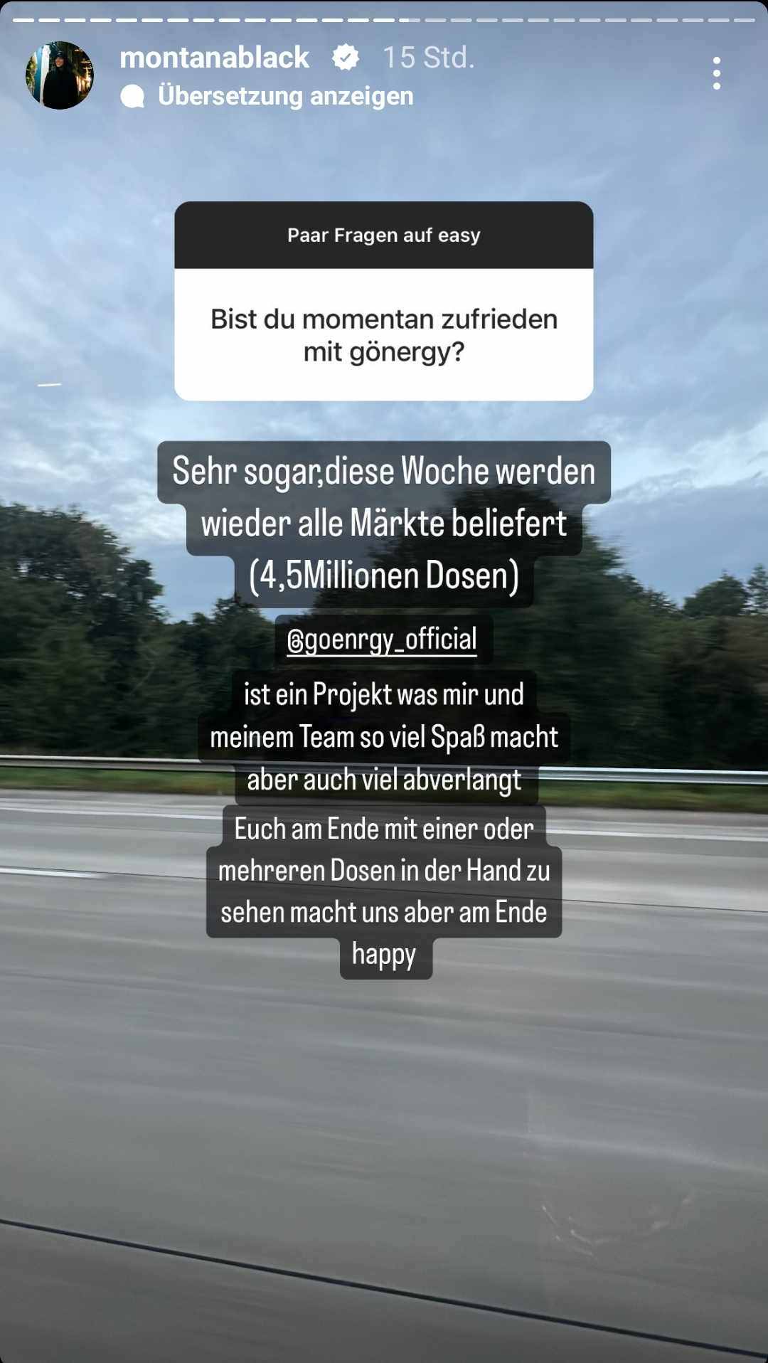 In seiner Instagram-Story verrät Monte, dass diese Woche erneut 4,5 Millionen Dosen an Supermärkte geliefert werden.