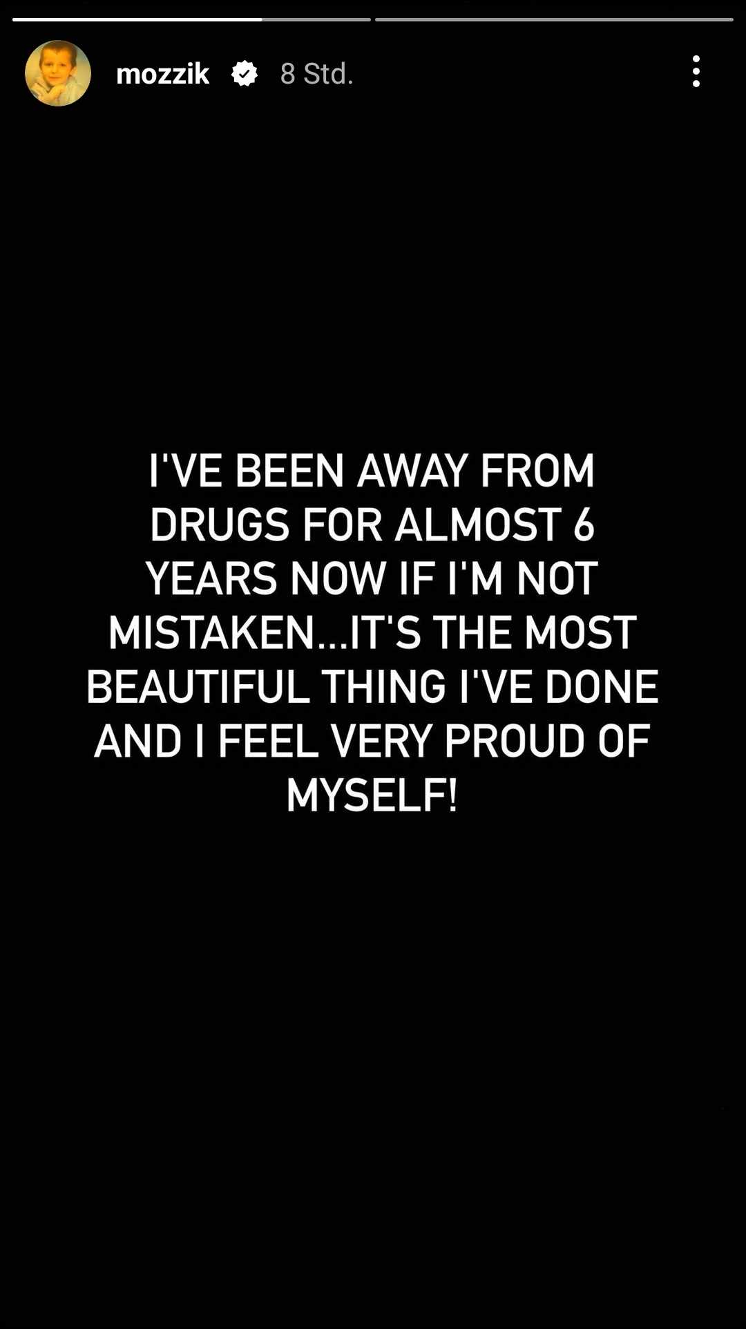 In seiner Instagram-Story verrät Mozzik, dass er bis zu seinem 21. Lebensjahr Drogen konsumiert hat.