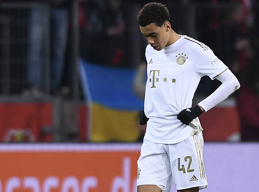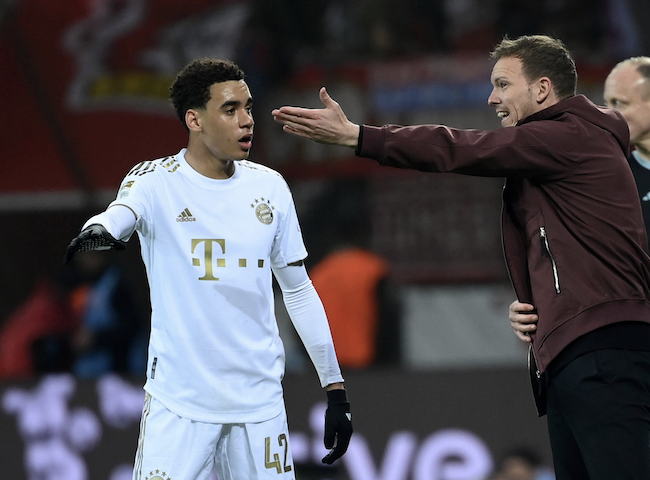 „Vor Anpfiff in Leverkusen sagte Nagelsmann gestern, dass Musiala wegen muskulärer Beschwerden (vom Rücken kommend) auf der Bank sitzt. Es sei nichts Schlimmes. Nur Belastungssteuerung“