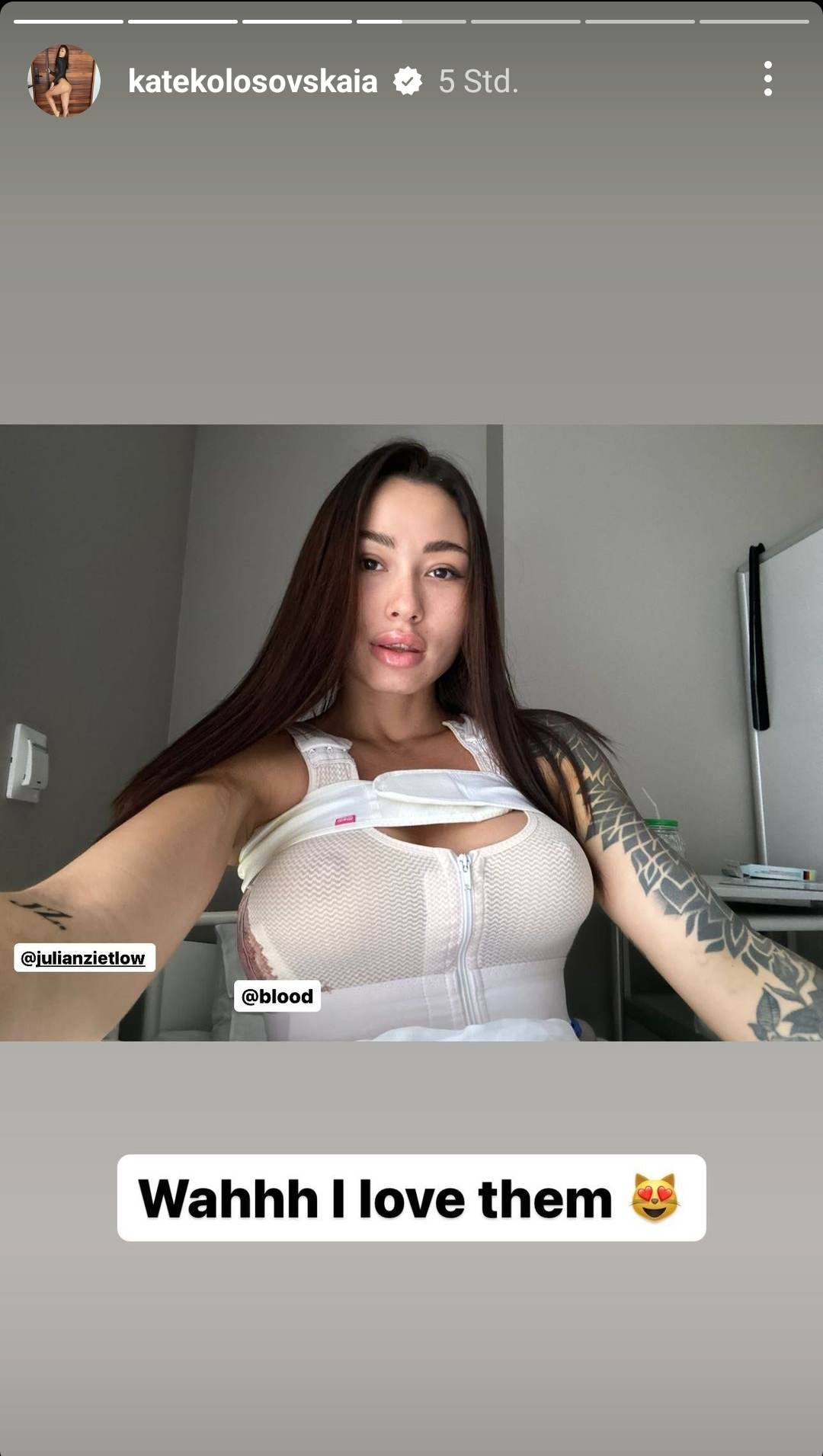 In ihrer Instagram-Story präsentiert sie stolz das Ergebnis. Ab sofort hat sie ein DD-Körbchen!