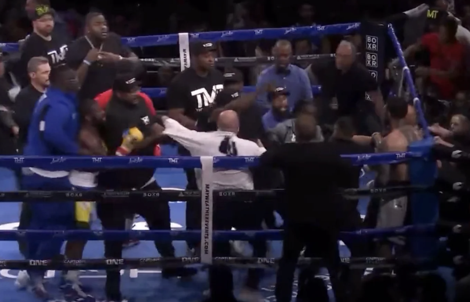 Anschließend stürmen rund 30 Menschen in den Ring und es eskaliert komplett…