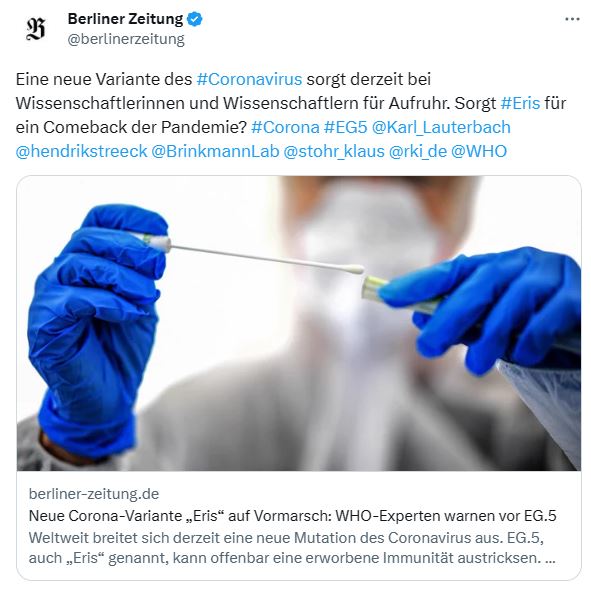 Für die Gesundheits-Organisation WHO ist die Ausbreitung trotzdem Grund genug, „Eris“ am Mittwoch als „Virusvariante von Interesse“ einzustufen.