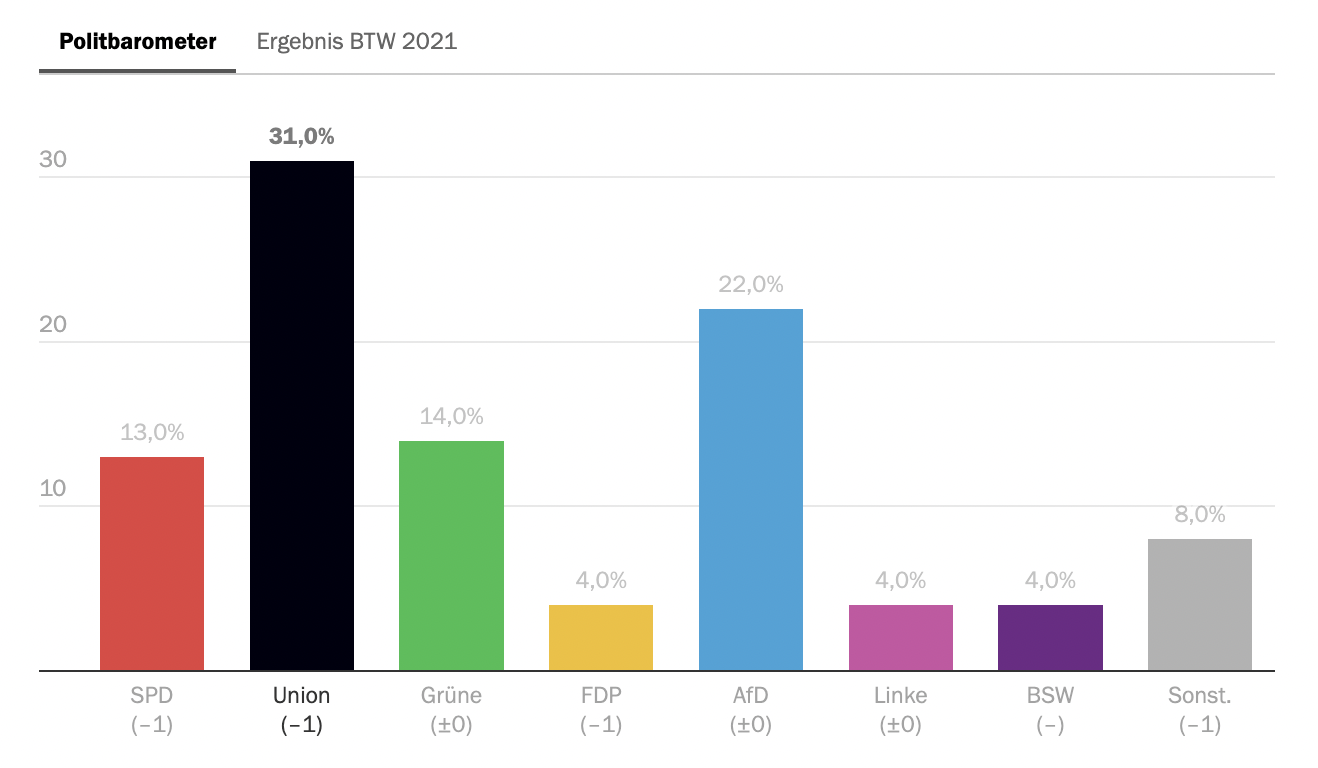 Die nächste Bundestags-Wahl findet erst im Herbst 2025 statt. Noch fast 2 Jahre! Doch wIe würden die Deutschen wählen, wenn diesen Sonntag abgestimmt würde?