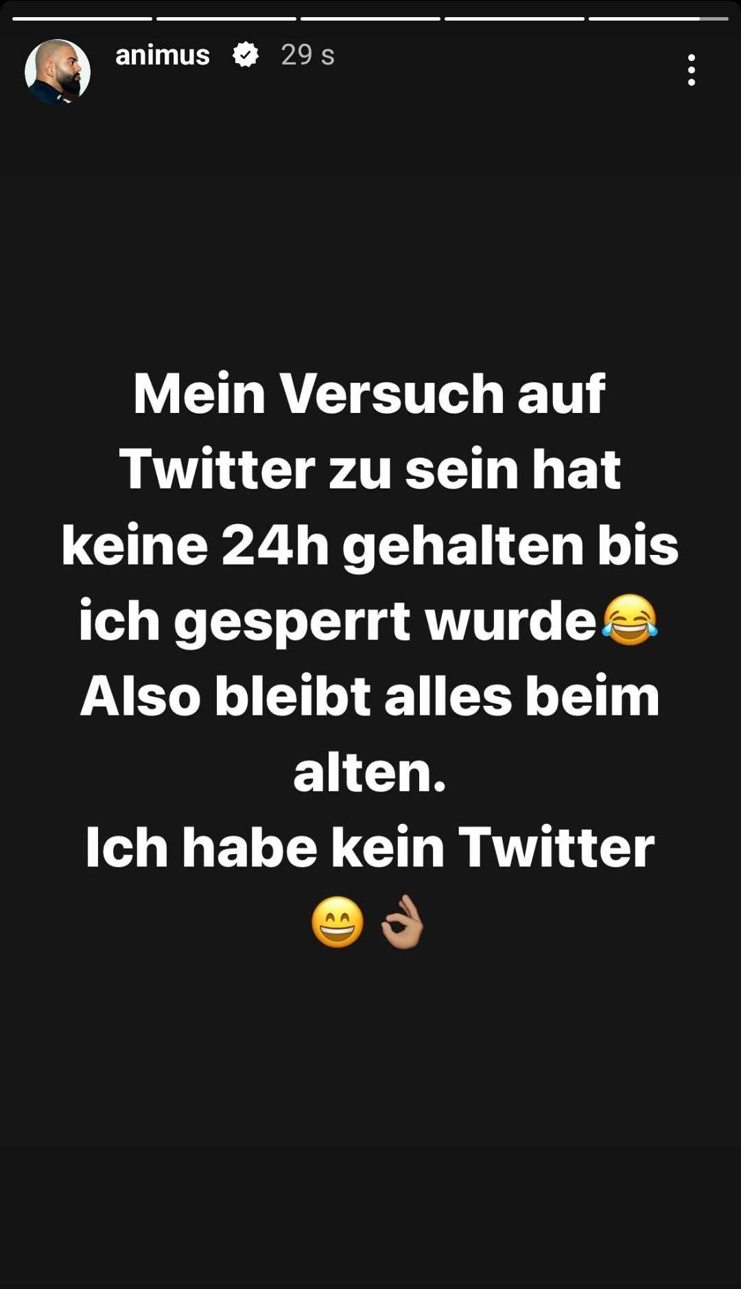 Doch am Dienstagabend gibt er bekannt, dass er direkt gesperrt wurde. Also: Animus hat weiterhin kein Twitter!