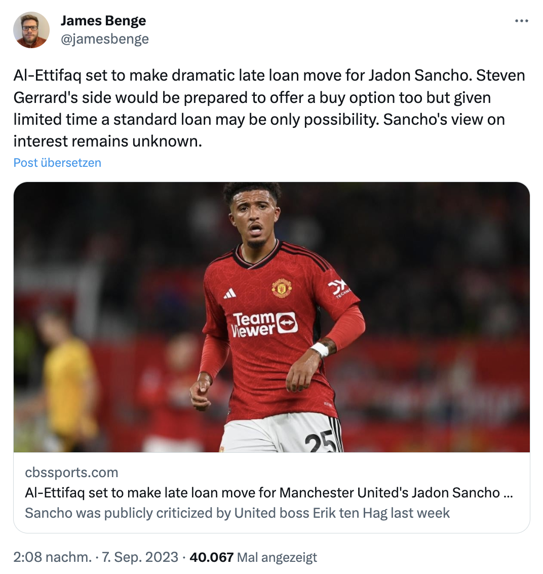 Die Liverpool-Legende ist Trainer des Saudi-Klubs. Gerrard will Sancho eine neue Chance bieten: 1 Jahre Leihe.
