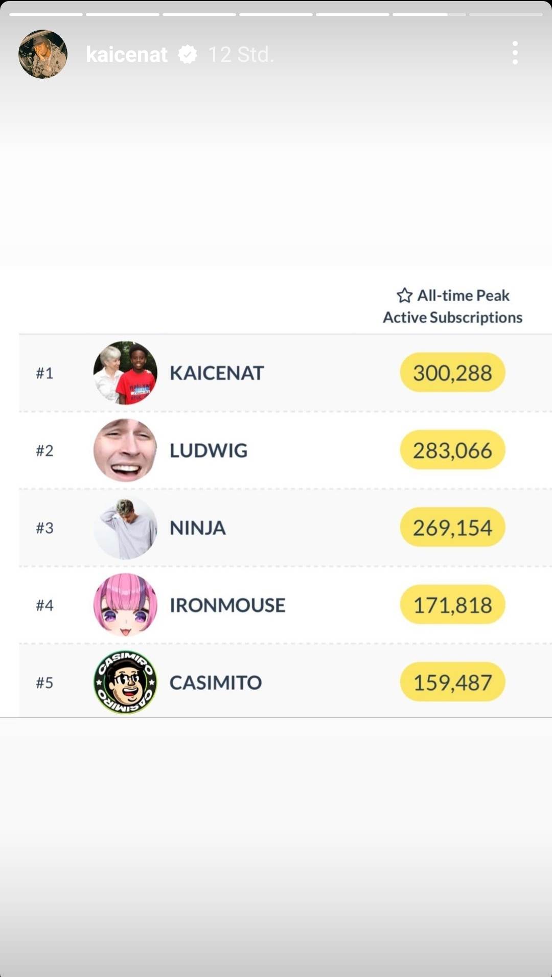 283.000 Abonnenten war der bisherige Rekord und zwar von dem Streamer Ludwig. In der vergangenen Nacht überholt Kai diese Zahl und steht mittlerweile bei weit über 300.000.