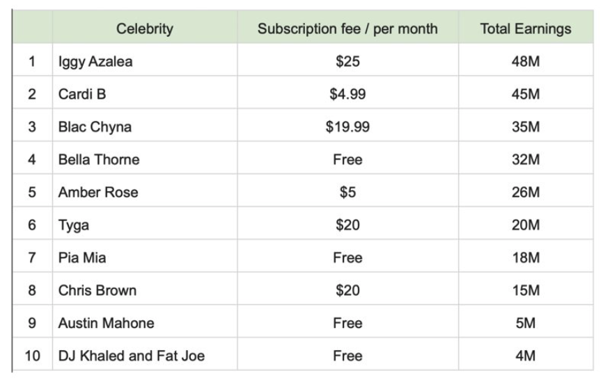 Die Nummer 1 ist die australische Rapperin Iggy Azalea, welche erst seit Januar 2023 auf der Erotik-Plattform aktiv ist. Sie soll seitdem knapp 50 (!) Millionen Dollar Umsatz gemacht haben!