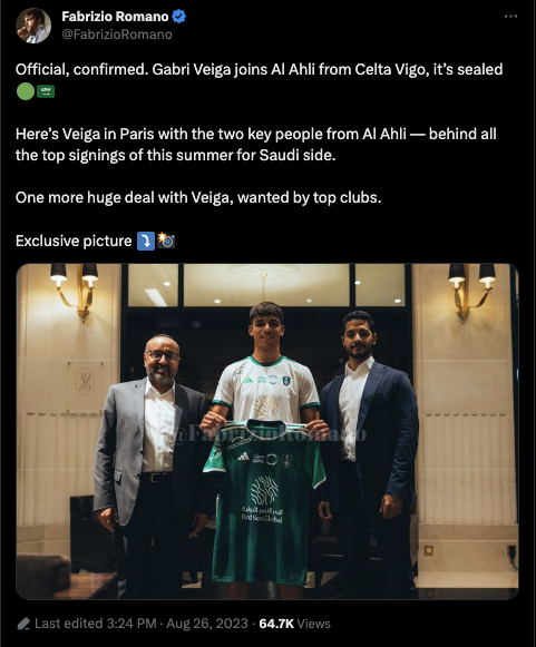 Vor zwei Tagen wurde es bereits von Fabrizio Romano bestätigt, doch nun gibt es das erste Foto: Der ehemalige Celta Vigo-Star ist ab sofort Teil von Al Ahli!