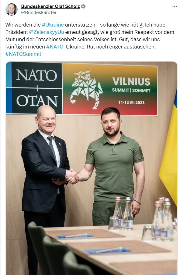 Das twittert Bundeskanzler Olaf Scholz nach einem Treffen mit dem ukrainischen Präsidenten.