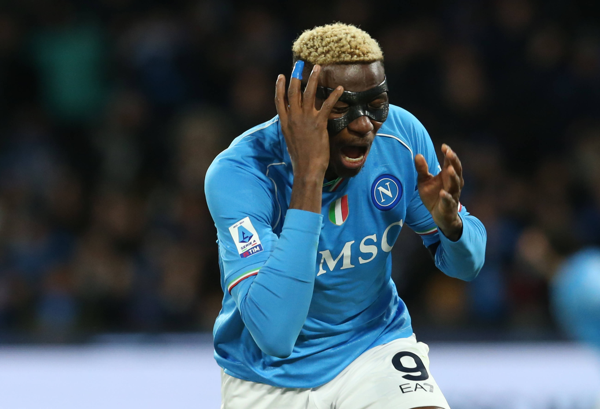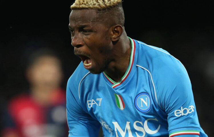 Osimhen kommt gegen Cagliari im Strafraum an den Ball und jongliert ihn plötzlich wie ein Künstler in der Luft.