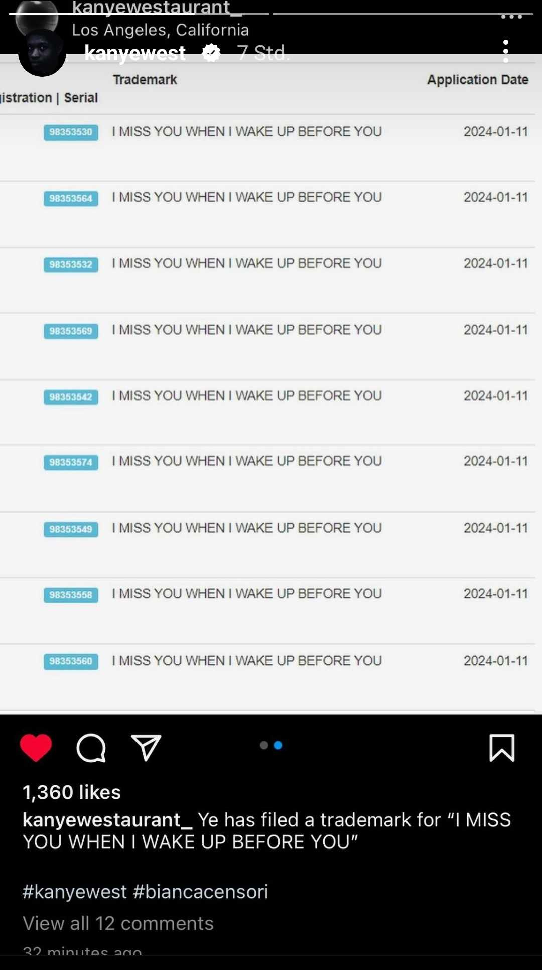 In seiner Instagram-Story zeigt der Ex von Kim Kardashian, dass er am 11. Januar 9 Anträge für eine Patentierung eingereicht hat um den Spruch rechtlich schützen zu lassen.