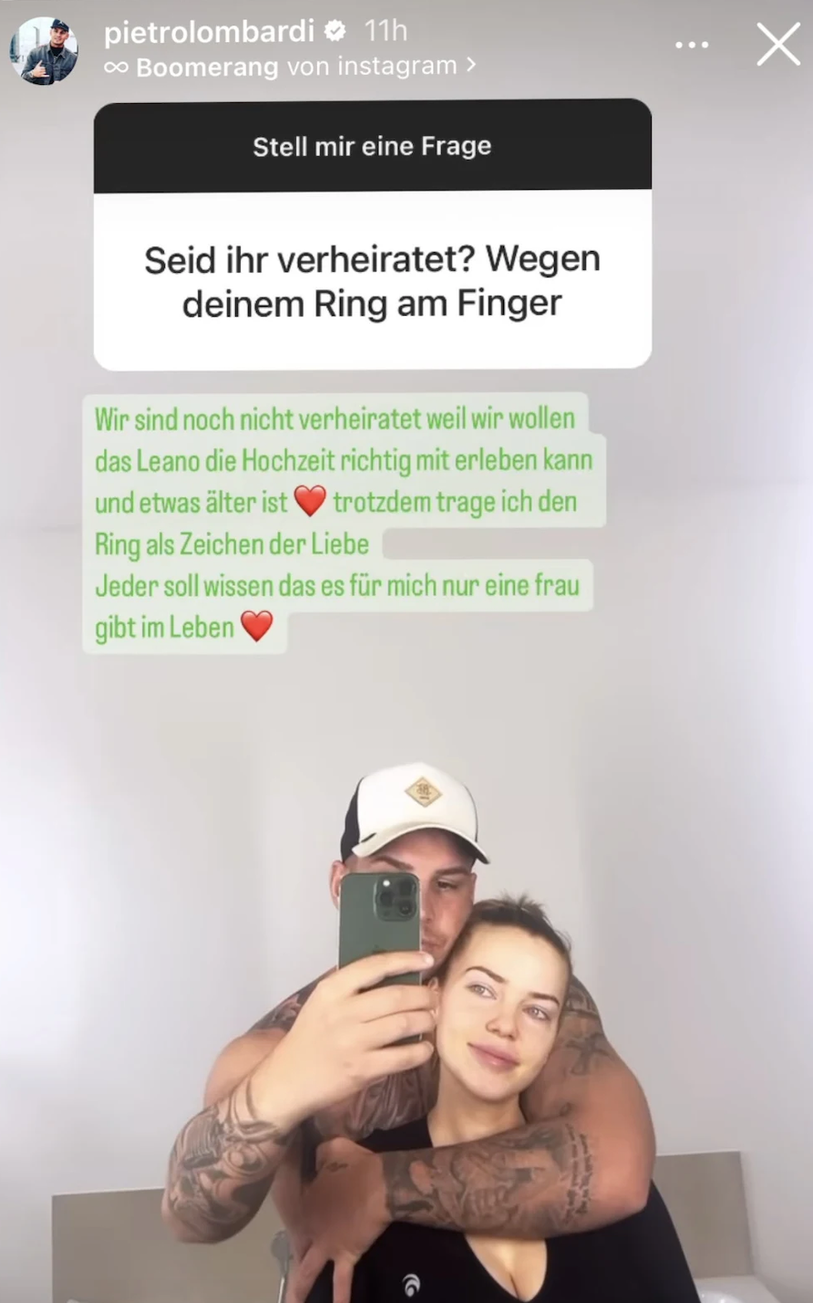 „Wir sind noch nicht verheiratet, weil wir wollen, dass Leano die Hochzeit richtig miterleben kann und etwas älter ist. Trotzdem trage ich den Ring als Zeichen der Liebe! Jeder soll wissen, dass es für mich nur eine Frau gibt im Leben“