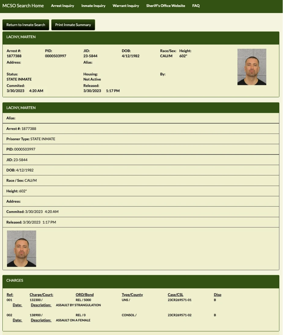 Auf der Website des Sheriffs in Charlotte (Mecklenburg County) ist ein Mugshot (Polizeifoto) von Marteria zu sehen.