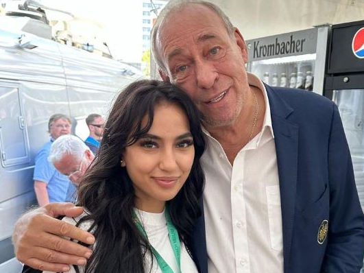 Gemeinsam mit Badmomzjay sowie dem Duo Celo & Abdi verfolgt sie die Partie aus ihrer Loge.