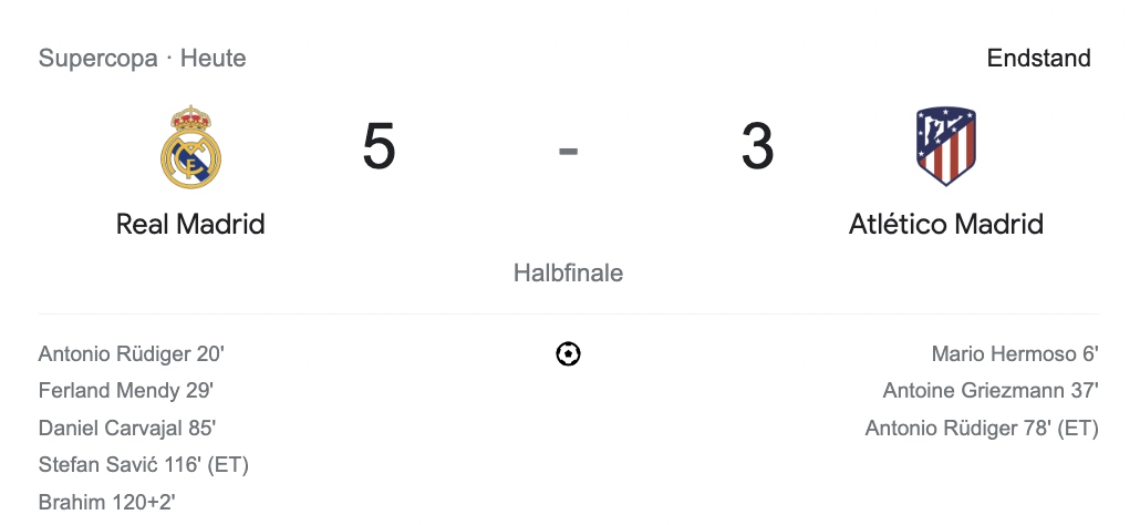 Mit 5:3 gewinnt Real Madrid am Mittwoch Abend gegen Atletico Madrid und steht im ersten Finale der Saison…