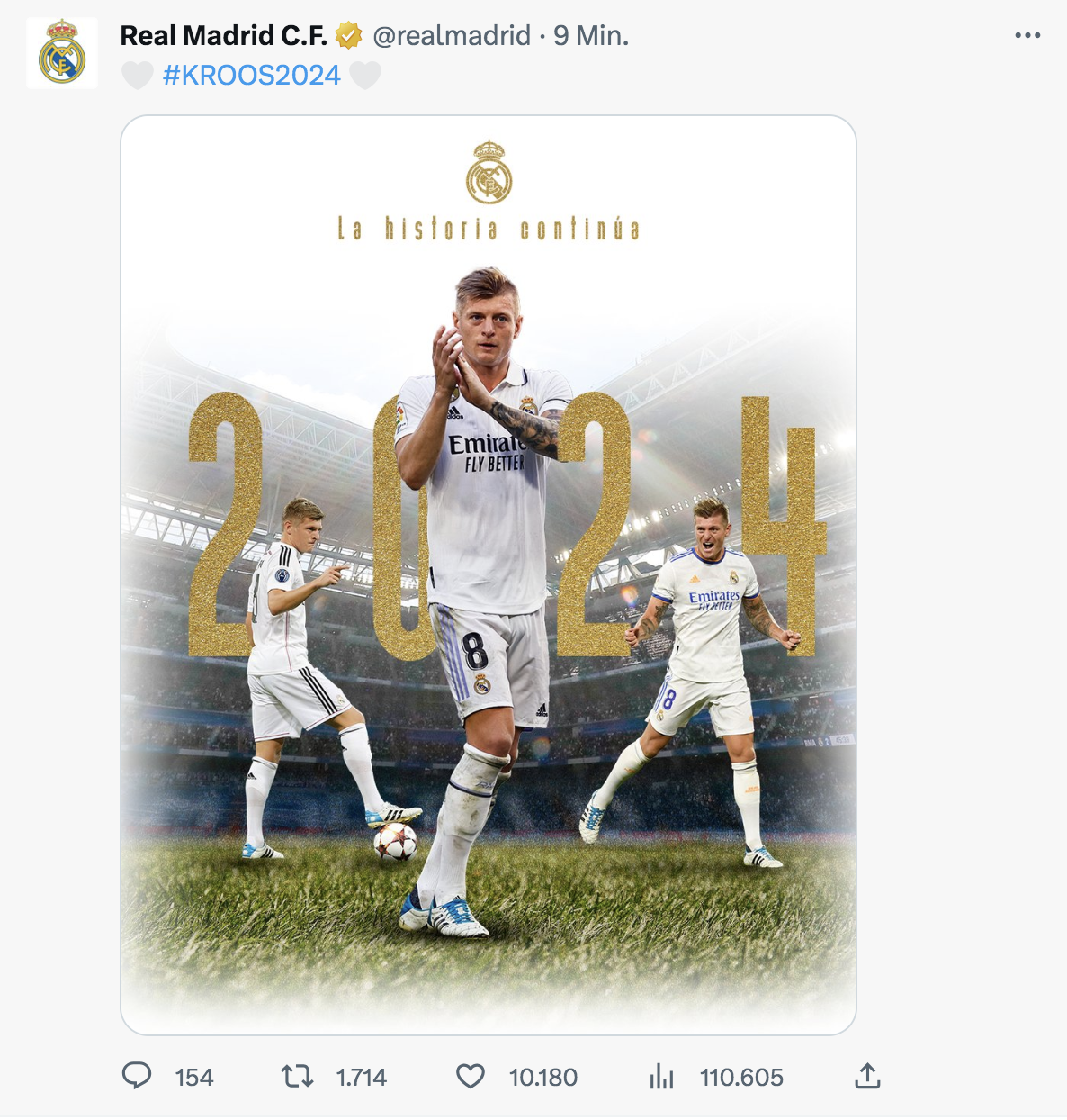 Kroos hängt ein weiteres Jahr dran und verlängert bis 2024.