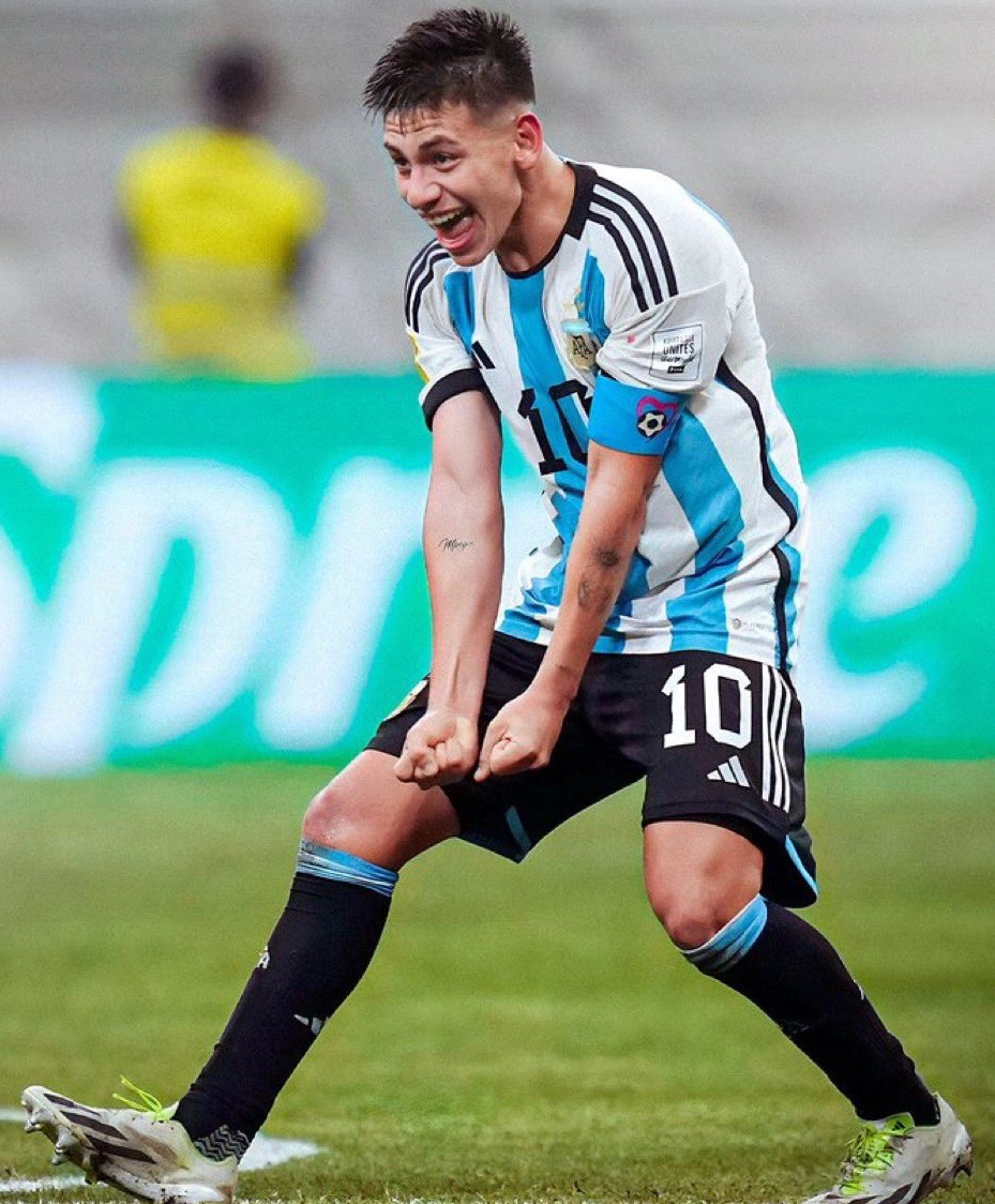 Genau wie sein großes Idol trägt auch Echeverri die 10 und die Kapitänsbinde bei Argentinien.