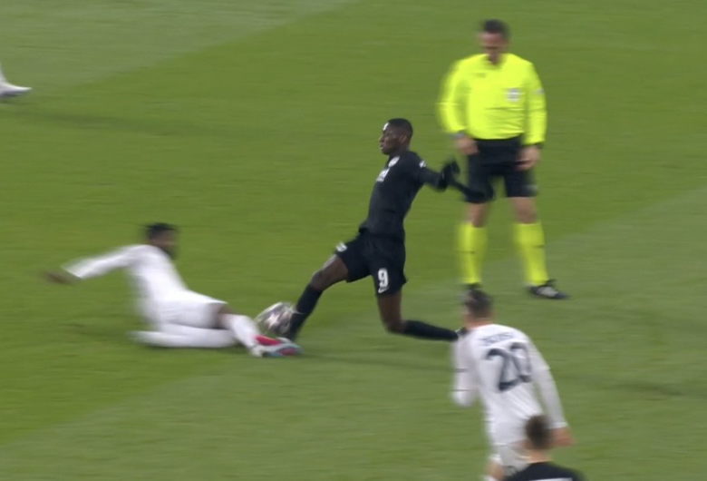 Harte Entscheidung gegen den Super-Stürmer! Bei einem Offensiv-Zweikampf tritt der Franzose seinen Gegenspieler um – und sieht Glatt Rot!