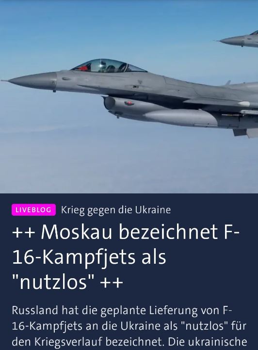 Die Lieferung von F-16-Kampfjets in die Ukraine rückt offenbar immer näher. Das kommt auch in Russland an, wo man angeblich über die Meldung nur lachen kann.