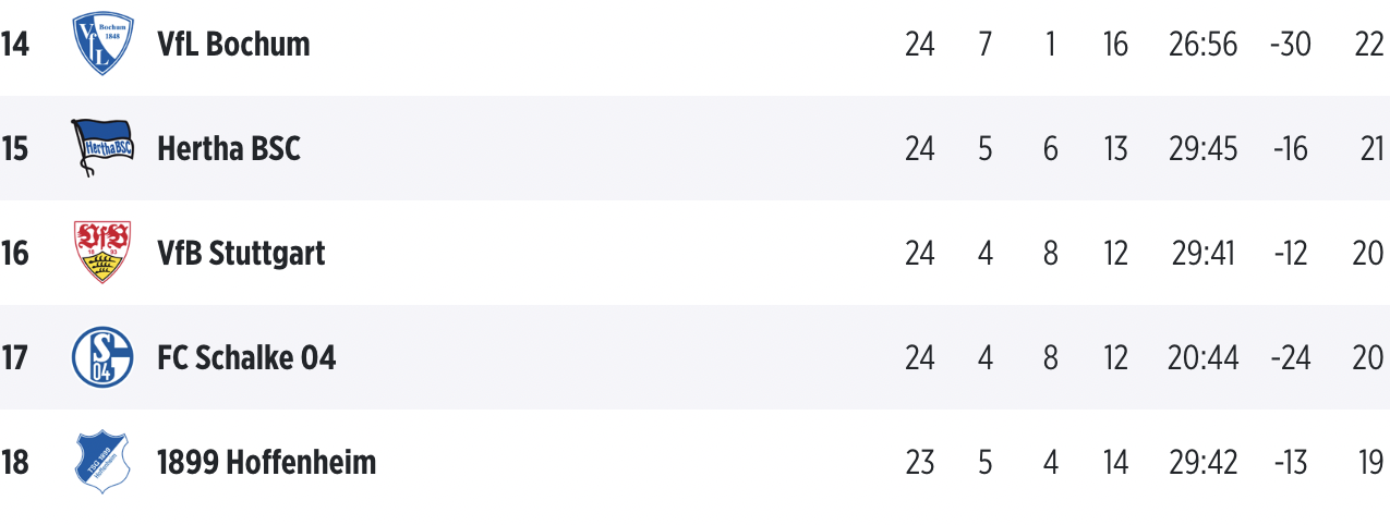 Schalke bleibt mit jetzt 20 Punkten im Abstiegs-Rennen – Platz 17!