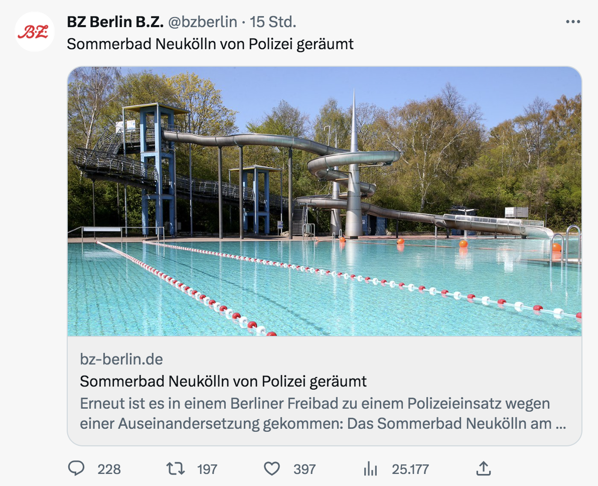 Kein Tag ohne einen Polizeieinsatz in einem Schwimmbad! Am Mittwoch lassen die Beamten ein ganzes Freibad räumen – nach einer Schlägerei an der Rutsche…
