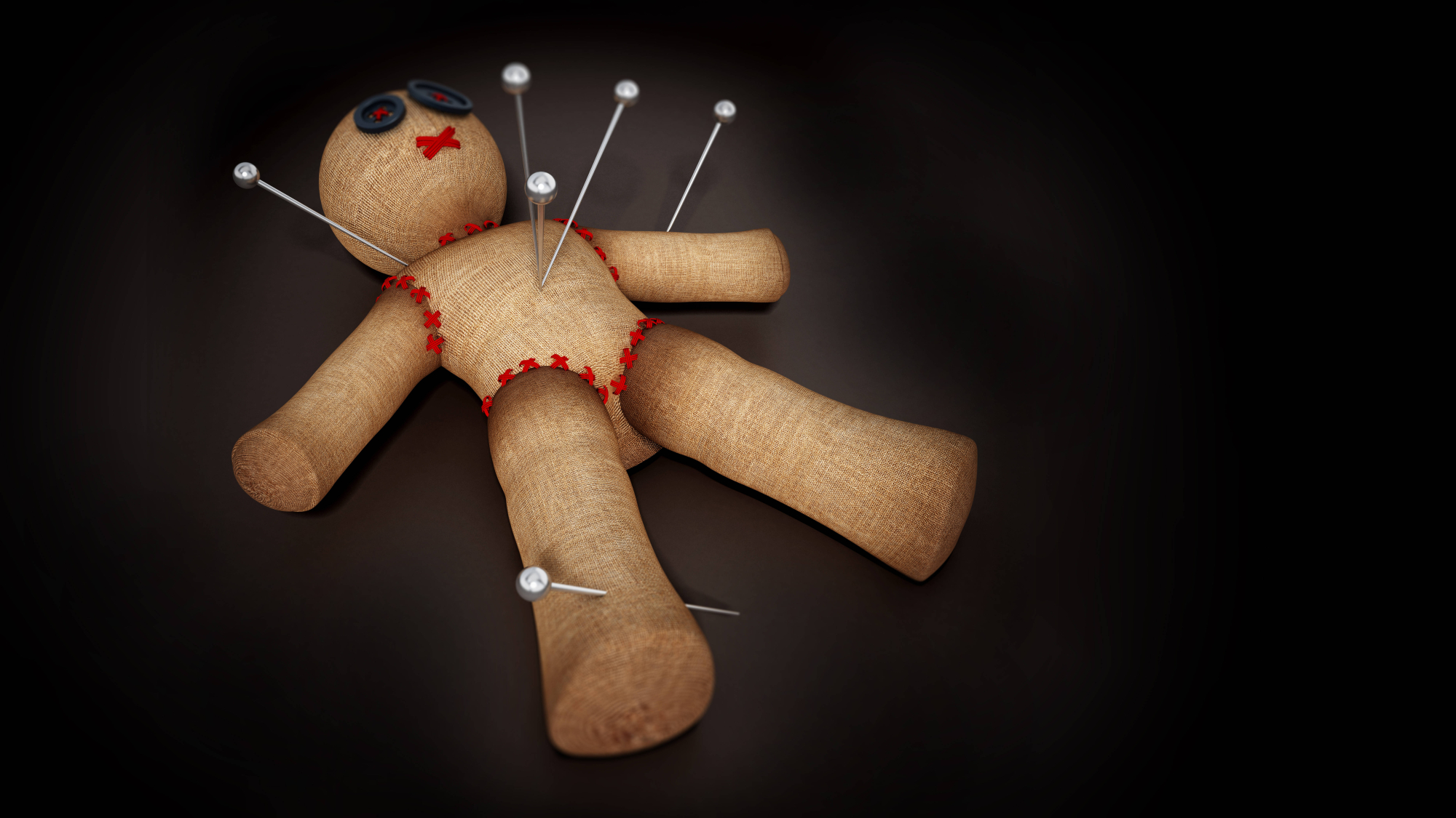 In einem im Netz kursierenden Video stechen mehrere Schamanen mit kleinen Schwertern in eine Voodoo-Puppe und rufen Zaubersprüche.